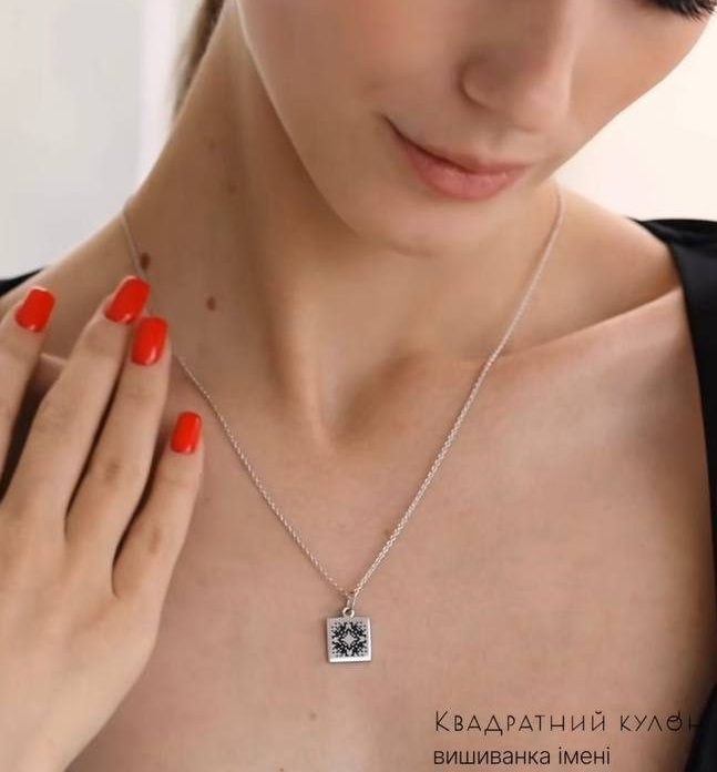 ПІДВІС КВАДРАТ З ВИШИВАНКОЮ ІМЕНІ, СРІБЛО
